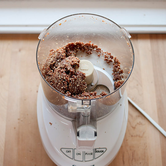 کافی‌ست همه را به هر میزانی که دوست دارید توی مخلوط کن بریزید و حسابی آردش کنید. نکته‌اش این‌ست که میزان هرکدام دقیقا با هم برابر باشد. می‌توانید کمی پودر نارگیل یا کنجد هم در آخرین مرحله که بقیه مواد آرد شدند، اضافه کنید. مواد که کمی حالت چسبندگی پیدا کردند، روی کیسه پلاستیکی پهن‌اش کنید. با قاشق صاف اش کنید یا یک کیسه دیگر رویش بگذارید و مثل لواشک پهن کنید. بعد بگذارید با همان حالت در یک جای خنک تا خودش را بگیرد.